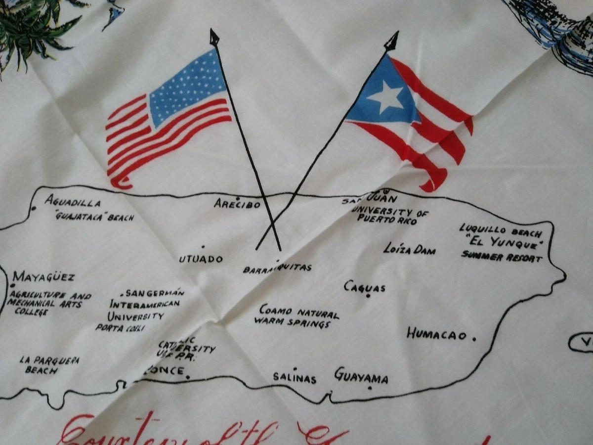 Vtg PUERTO RICO Commonwealth Cotton Souvenir Scarf Map & Island